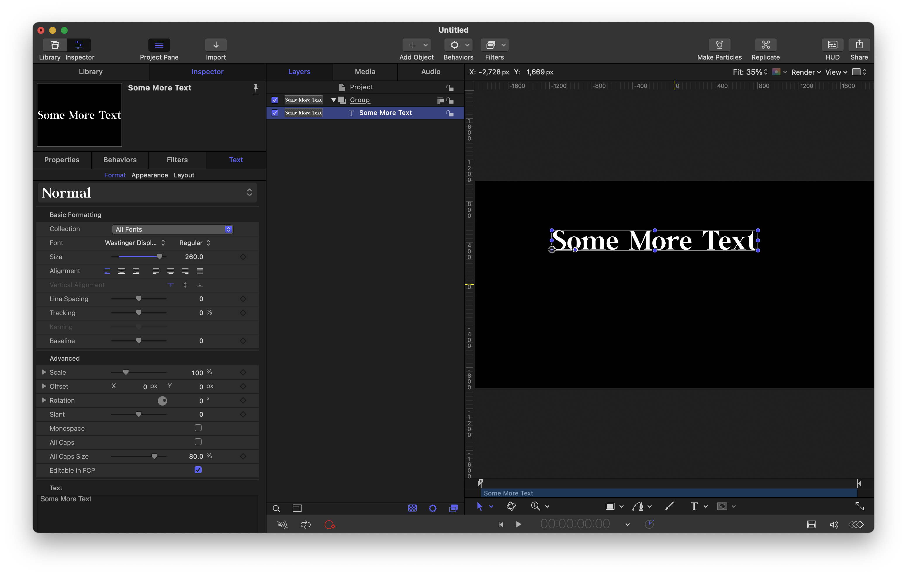 The *secret* to making this a valid replacement for Transforms is to set the Start Offset to the number corresponding to the LAST FRAME of your Project. Specifically, if you have a 10 second project at 30 FPS, then you need to set Start Offset to 299 (if you have your projects set up to start at frame #0). You will also need to select the text object, go into Properties > Timing [Show] and set the Duration to 1 frame longer than your project, or in my example 301.