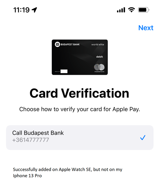 I requested another card from the bank and it came up in my online Budapest Bank account as an option to add it to my wallet and then I can use it with Apple Pay until my physical card arrives.
