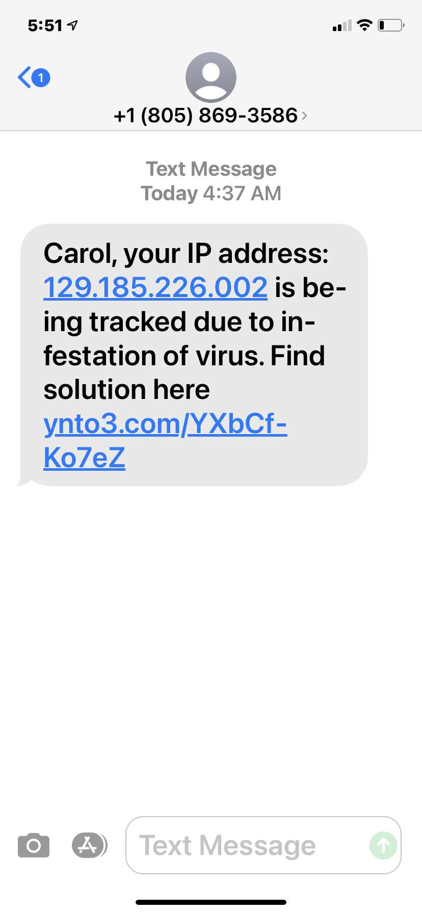 I received a text. My Ip address is being tracked due to a virus. They want me to go to the App Store and download an app. Is this another scam?