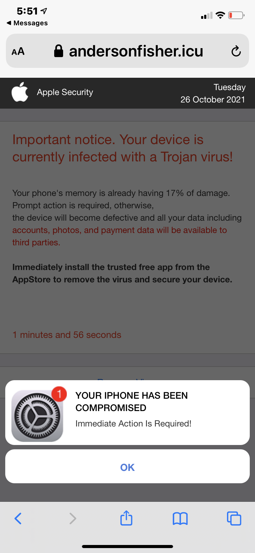I received a text saying my phone basically saying I’ve been compromised. I need to download a free app to help with security. It looks like it’s from Apple. What should I do?