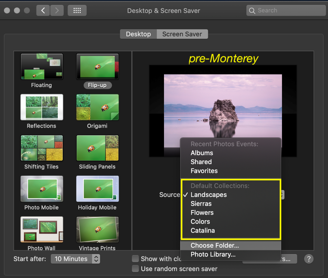Same, screen-saver issue but also all the default sources for setting the Classic screen saver (or any slideshow screen saver basically) is gone since Monterey.