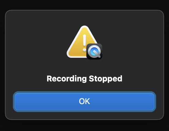Quicktime video recording stops at 10:55 in MacOS Monterey