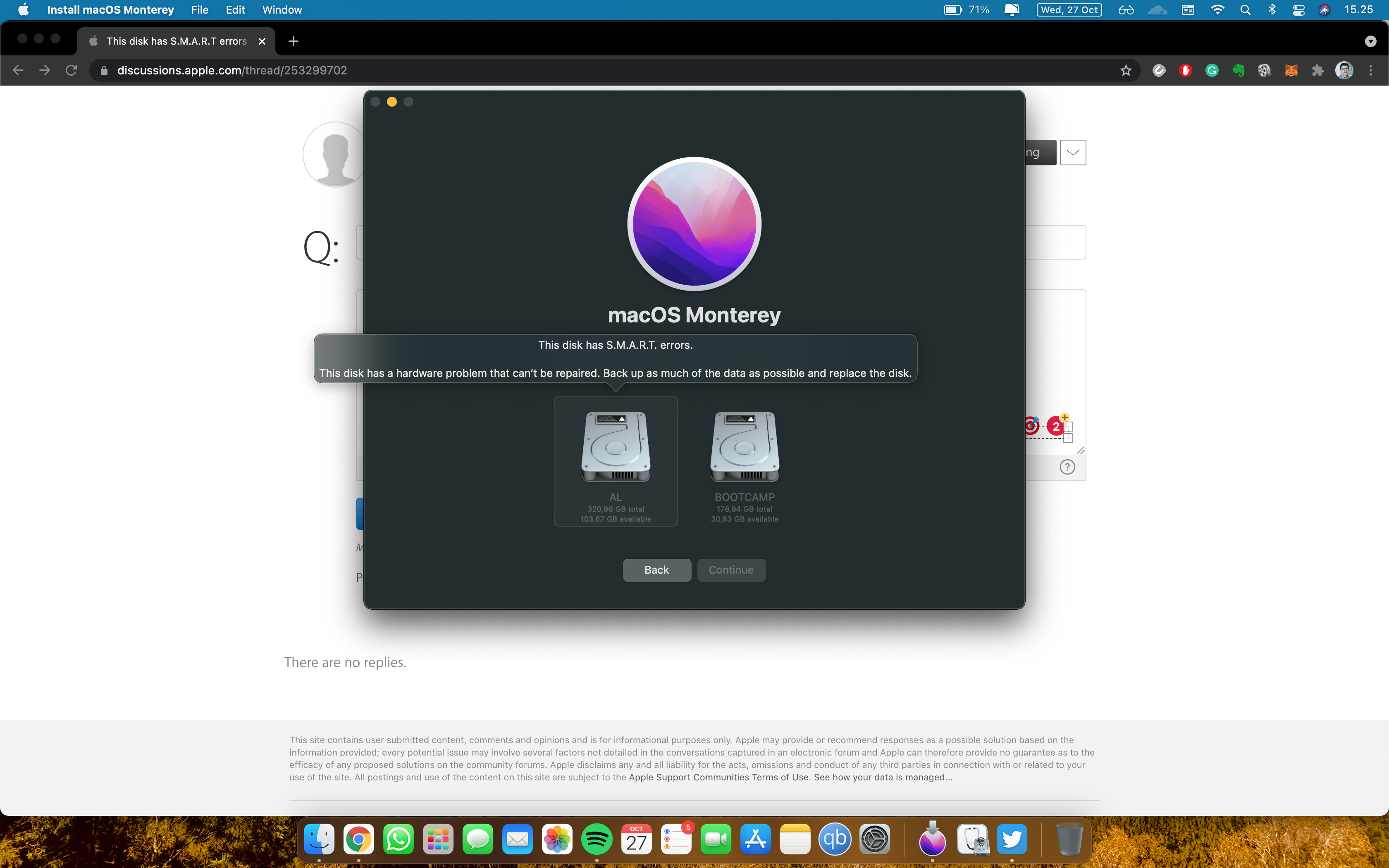 Since you have a USB-C Apple laptop you will need to have the Logic Board replaced once the SSD fails. Unfortunately at this time it appears Monterey will not install on a laptop with a third party internal SSD or if the internal SSD is reporting a SMART failure. I doubt Apple will change this behavior so if you want to install Monterey you will need to have Apple or an AASP replace the Logic Board.