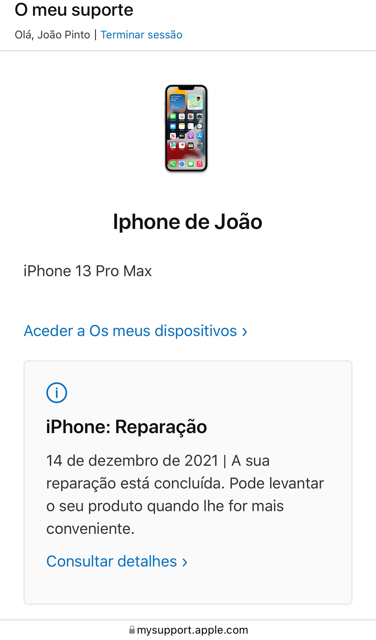 Update: incongruent information even on my Apple id account. Began having the following problems - pink screen of death 1 time with reboot; câmera didn’t focus filming in low light condition; genuine 5w (iPhone 11) and 10w (iPad) chargers didn’t work, only charged with 20w and MagSafe chargers; not identified by MacBook when plugged in. Left it in Vodafone store last 06/12, had the information that was ready on the 14th, no call from Vodafone till 17th, went to the store, no one knows where the iPhone is. Started a call with Apple assist, got a different information that the iPhone was replaced, they didn’t know the company who recieved it and didn’t assume them as a Apple oficial repair entity. They didn’t even know what was happening and where the iPhone was also. Way to go Vodafone and Apple Portugal!