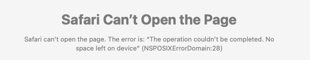 - Reload the page — reloading does nothing; once Safari is in this state opening any page shows the error
