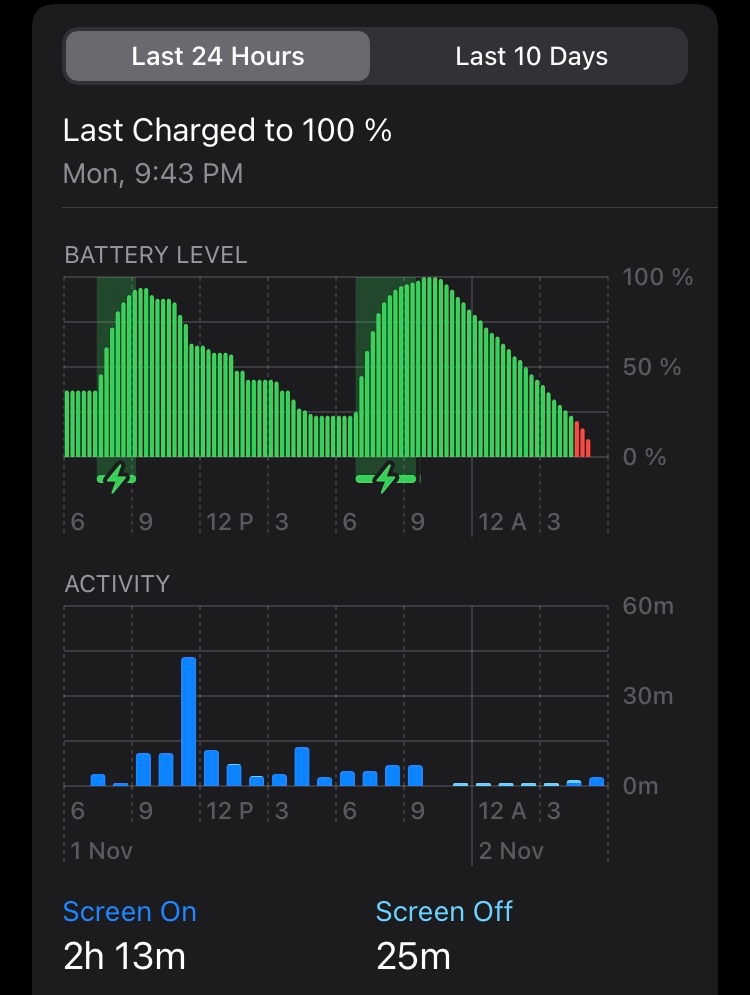 Used to have solid 24 hours, now I charge it twice a day, battery health is still 98%.