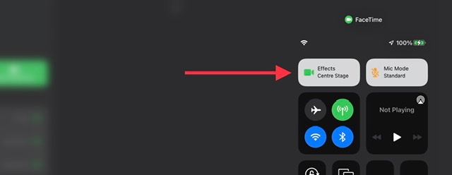For iPadOS15, Centre Stage settings are accessed from the Control Centre whilst a supported App is running. Swipe downwards from top-right of the screen: