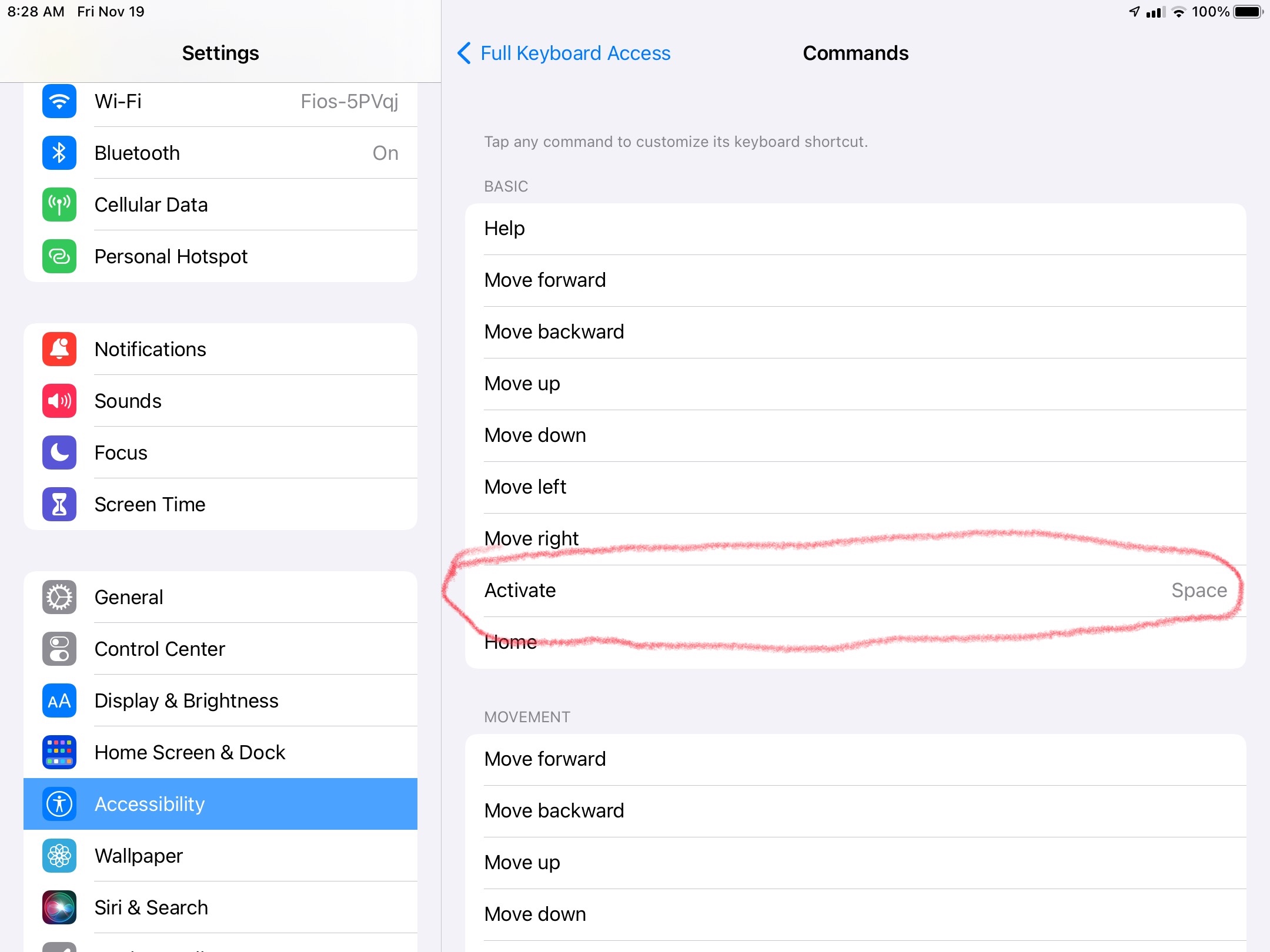 How can I get the space bar on my iPad smart keyboard to work without the opt key?