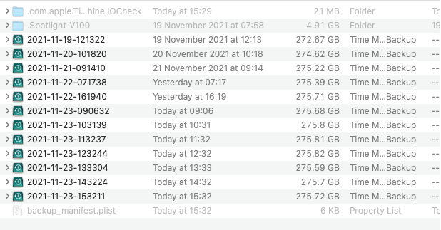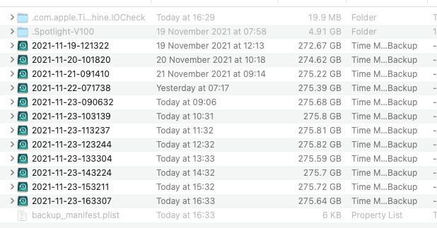 2021-11-24 09:54:01.029729-0800 Backing up 1 volumes to Time Machine+ (/dev/disk5s4,16): /Volumes/Time Machine+