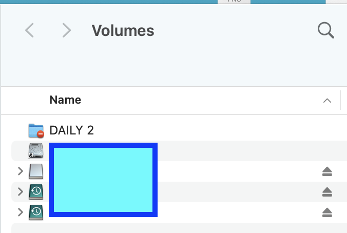 DAILY 2 1. Similarly, the mount point for this volume in disk utility is /Volumes/DAILY 2 1.