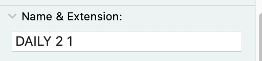 I have an APFS volume named DAILY 2. When I get info on it, the name and extension section says