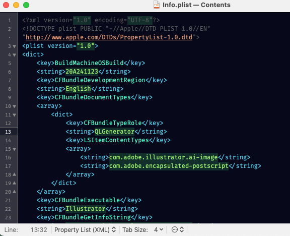 4. Find the line "<string>com.adobe.illustrator.ai-image</string>"