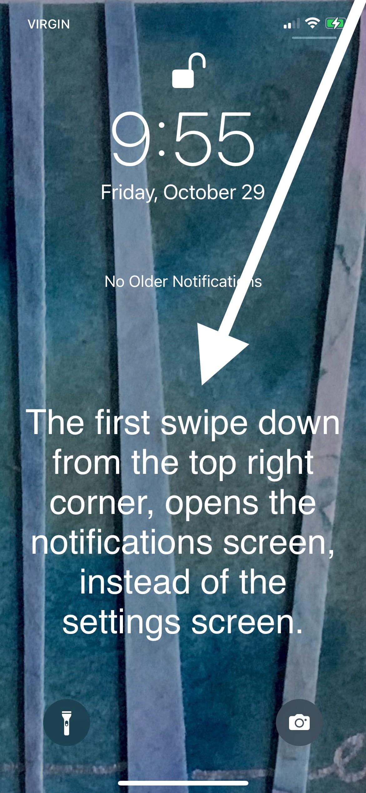 I have an iPhone 12 with iOS 15.0.2 and there seems to be a glitch. If I have any apps open, swiping down from the top right corner, now opens the notifications screen (instead of the settings). It now takes two swipes down from the left to open the settings. 😣 I find this annoying and inefficient. Is there any way to get it to go back to opening the settings on the first swipe? (See screen captures.)