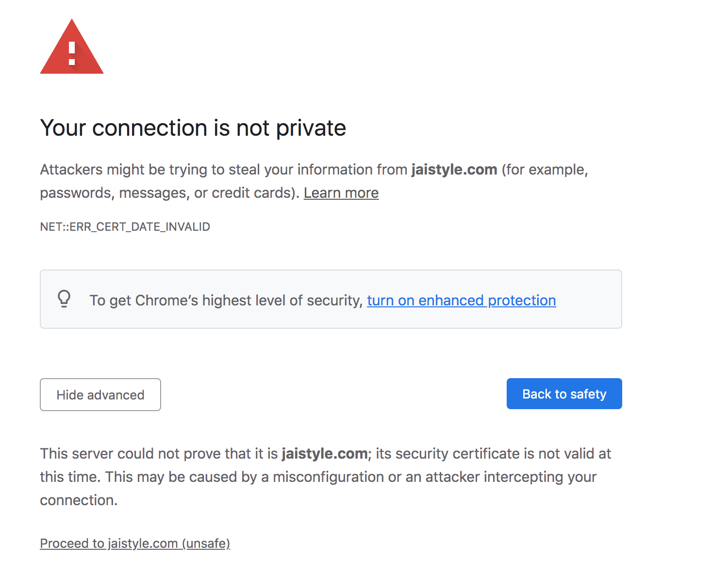 I use Google Chrome. All of the sudden, when trying to open websites I get this error message. For some sites, I can click on "Advanced" under the error message and click the web address provided with (unsafe) beside it and proceed to open the website. Other sites, I am totally blocked from. The other problem that has arisen, is that for the sites that I can click through and access, the images won't load.