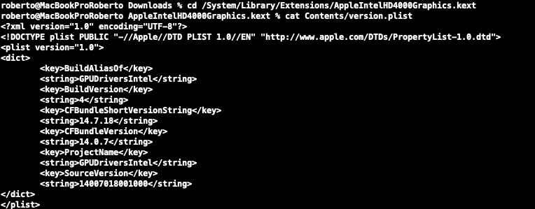 As already told I have a clean install of Catalina on a second Harddisk. I installed 'Security Update 2021-006 Catalina' onto this HD. This includes "/System/Library/Extensions/AppleIntelHD4000GraphicsGLDriver.bundle" Version 14.7.18