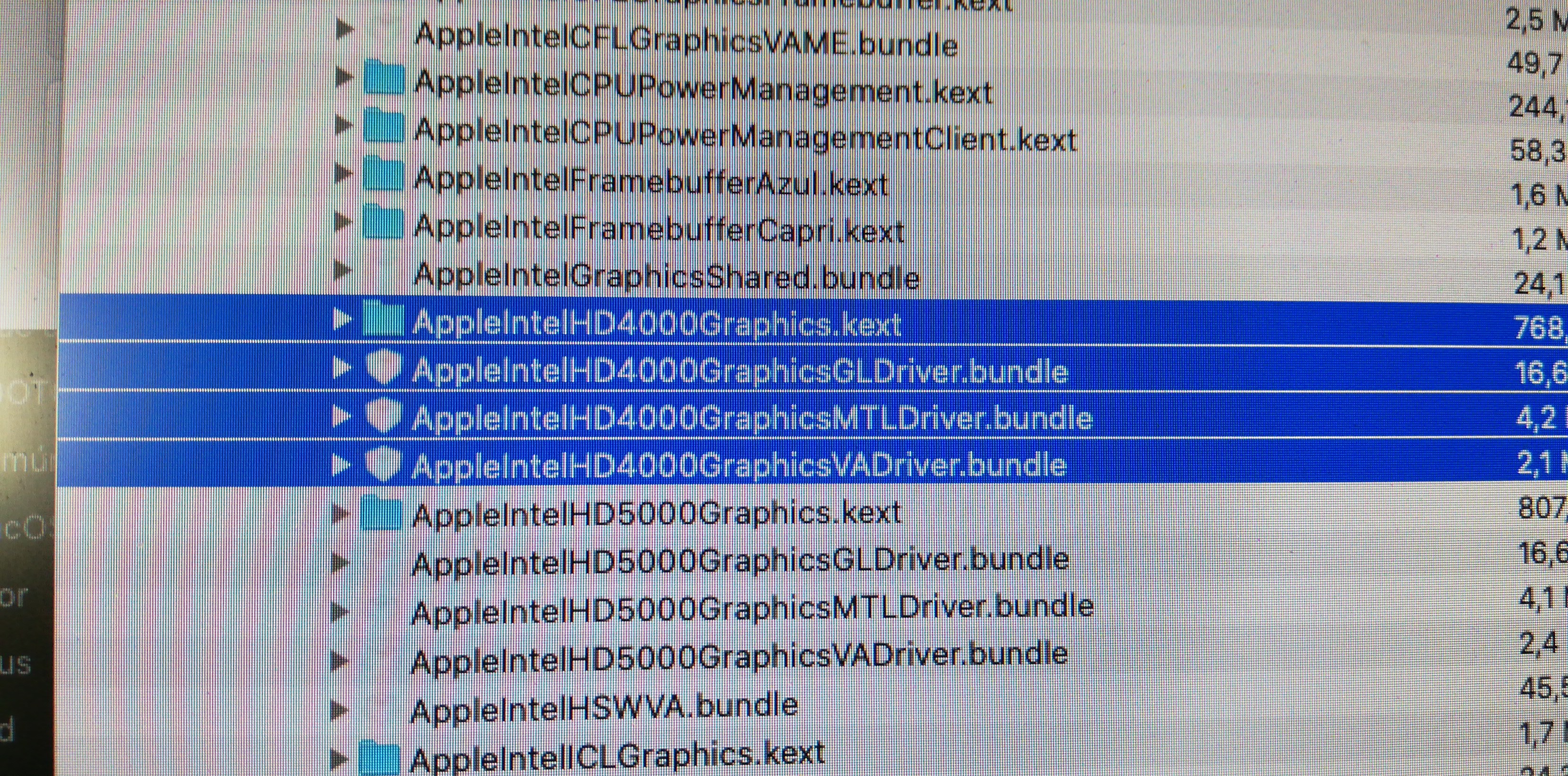 As already told I have a clean install of Catalina on a second Harddisk. I installed 'Security Update 2021-006 Catalina' onto this HD. This includes "/System/Library/Extensions/AppleIntelHD4000GraphicsGLDriver.bundle" Version 14.7.18