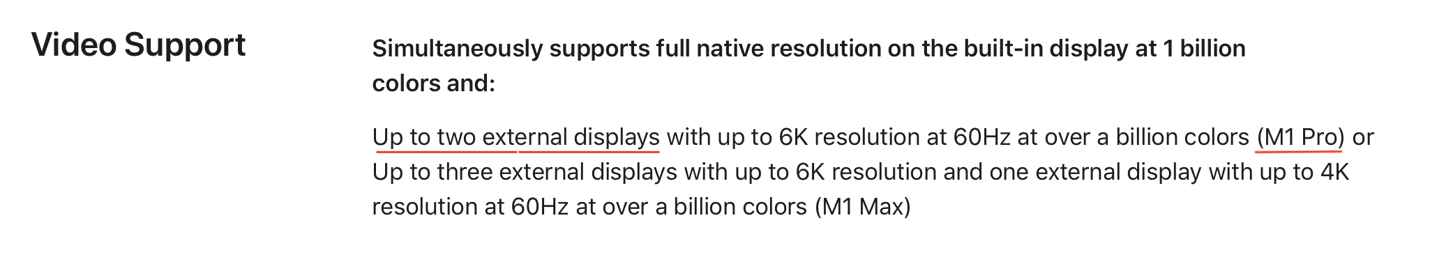 i see from the specs that the new 2021 m1 pro can support upto 2 external 6K displays. But if it is just 4K or 1080p displays , i am wondering if this is just 2 external displays as well OR will it be 3 or 4 ? assuming i use the HDMI and other 2 via USBC/Thunderbot with adapter.