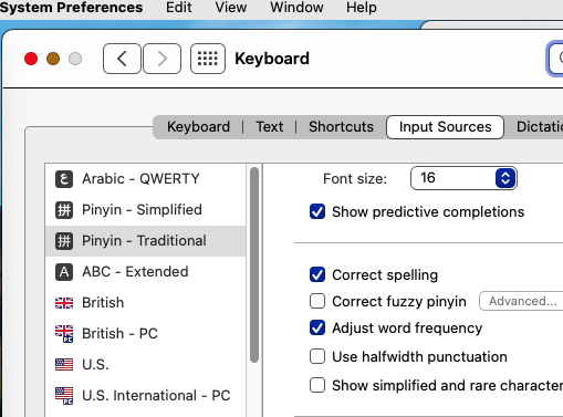 I'm trying to type in Pinyin for Chinese traditional - the punctuation is different from English: