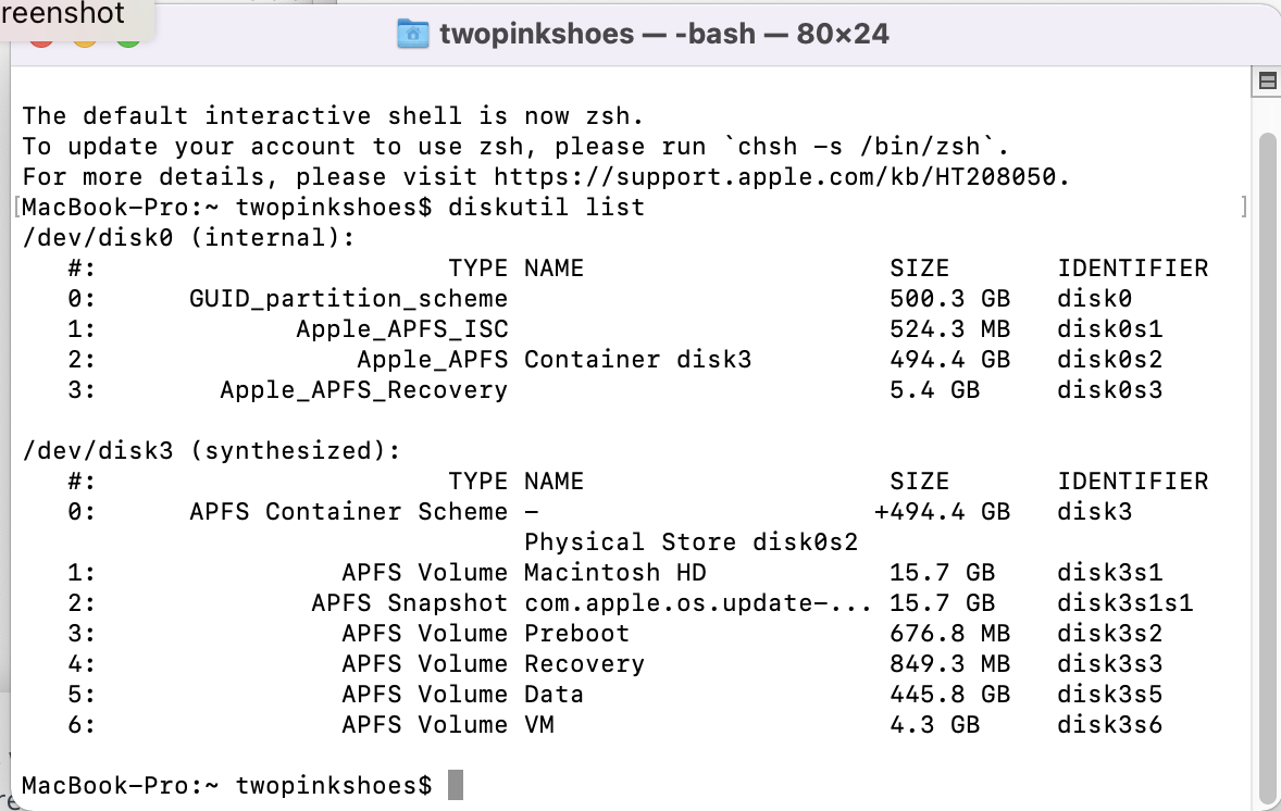 which looks in the given folder (/System/Volumes) and lists all the folders under it and the folders those contain, and the amount of data in each. I found the biggest of those and iterated.
