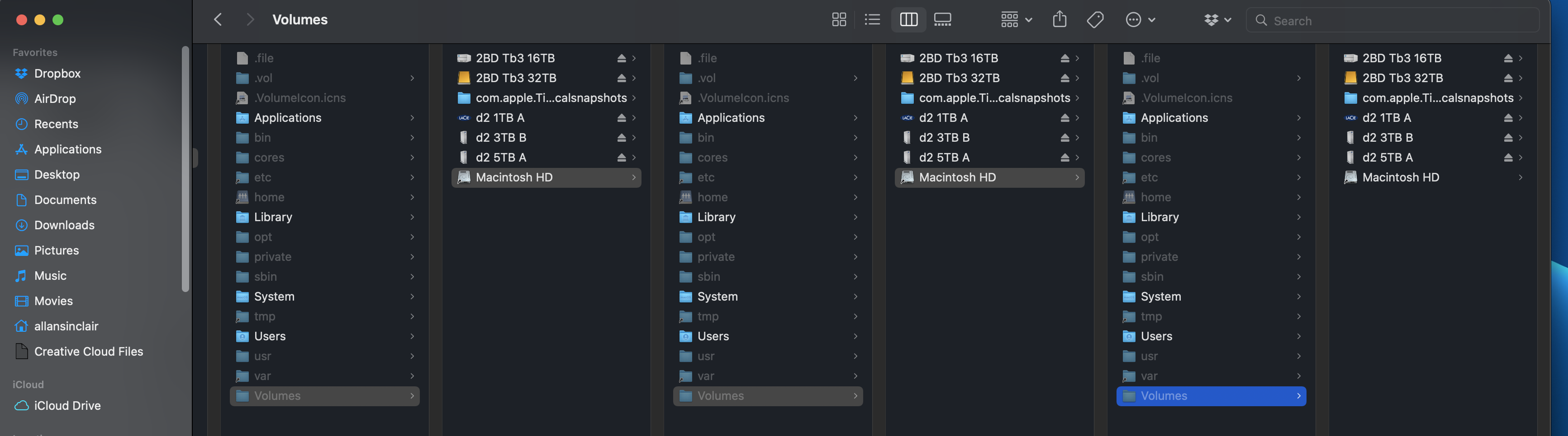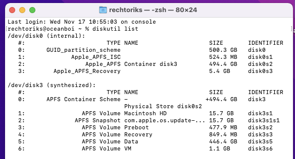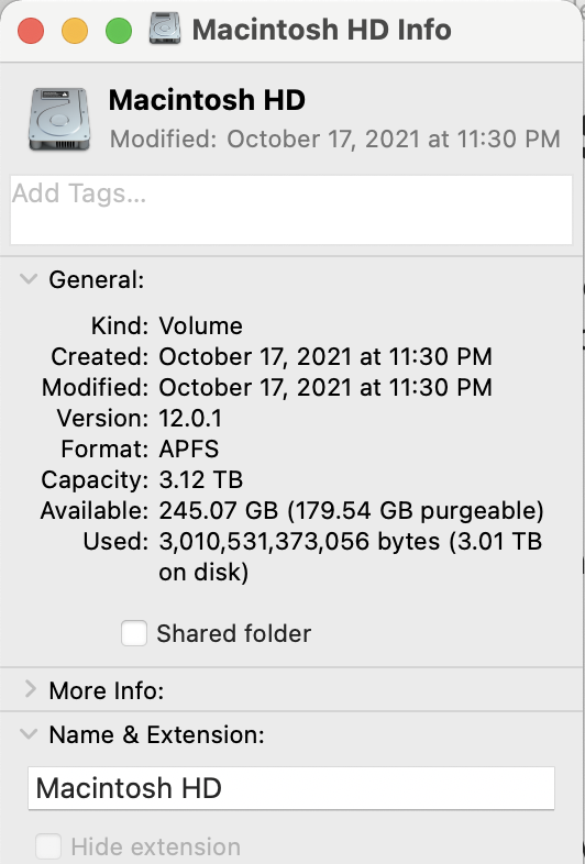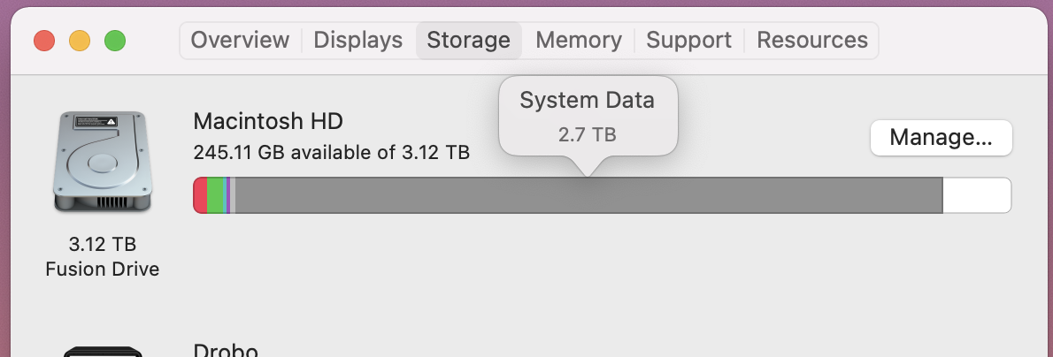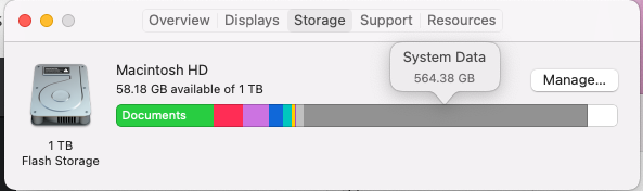 which looks in the given folder (/System/Volumes) and lists all the folders under it and the folders those contain, and the amount of data in each. I found the biggest of those and iterated.