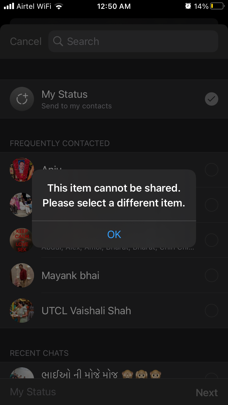 Unable to share bounce photos via whatsapp since IOS15 upgrade