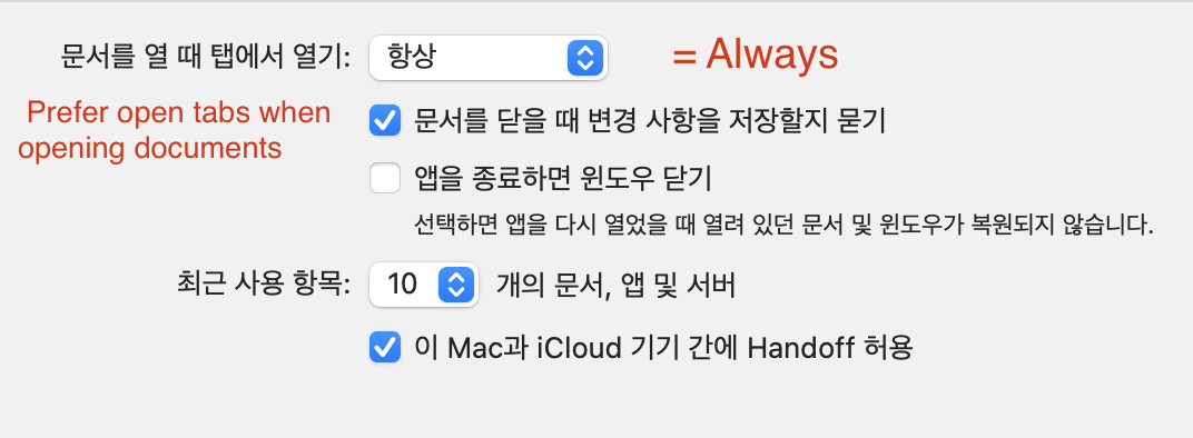 Multiple PDFs in one window (several tabs): "Prefer open tabs when opening documents" to 'Always' failed