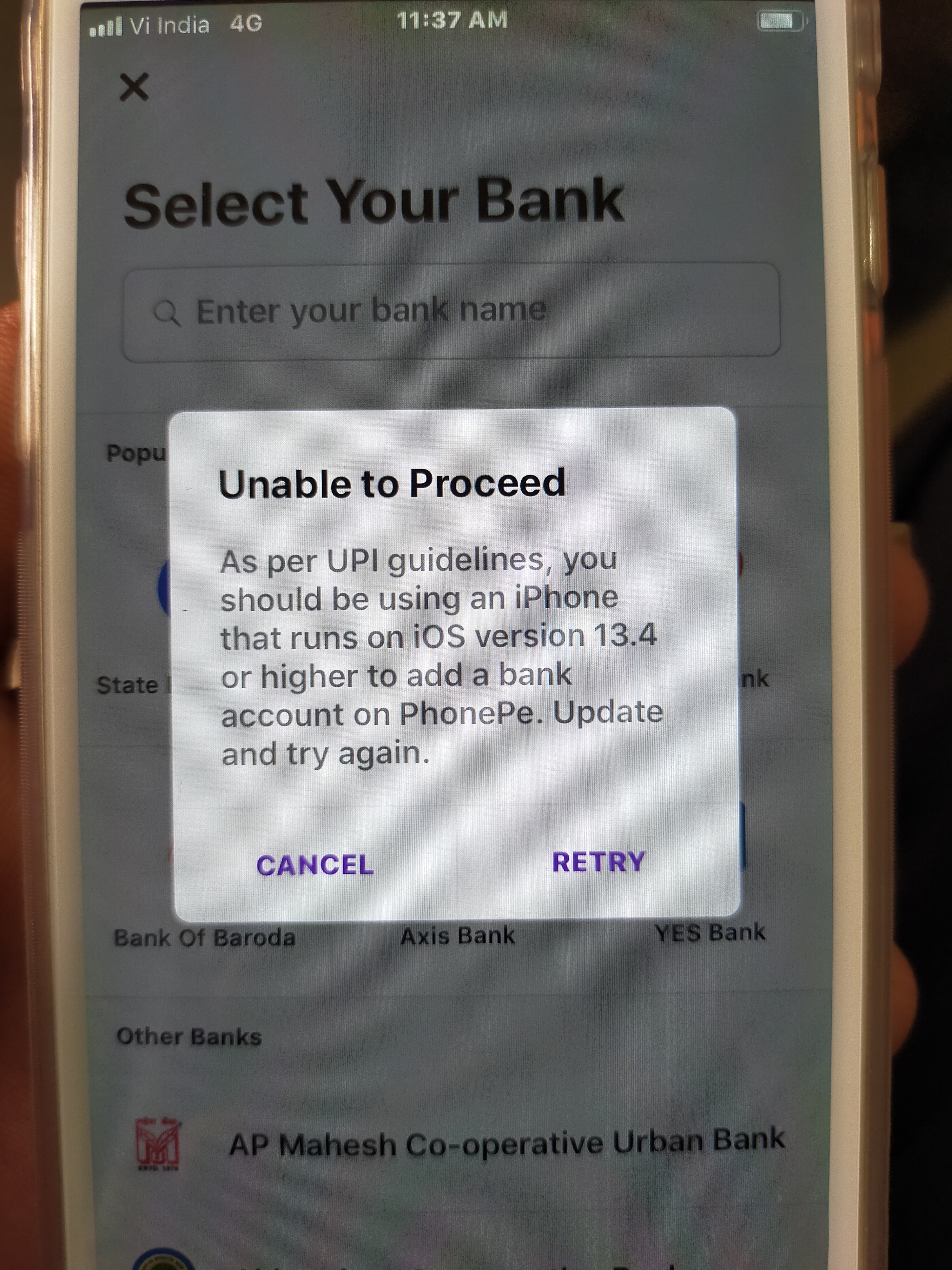 Iphone 6 UPI not working and new version update iOS 13.5.0
