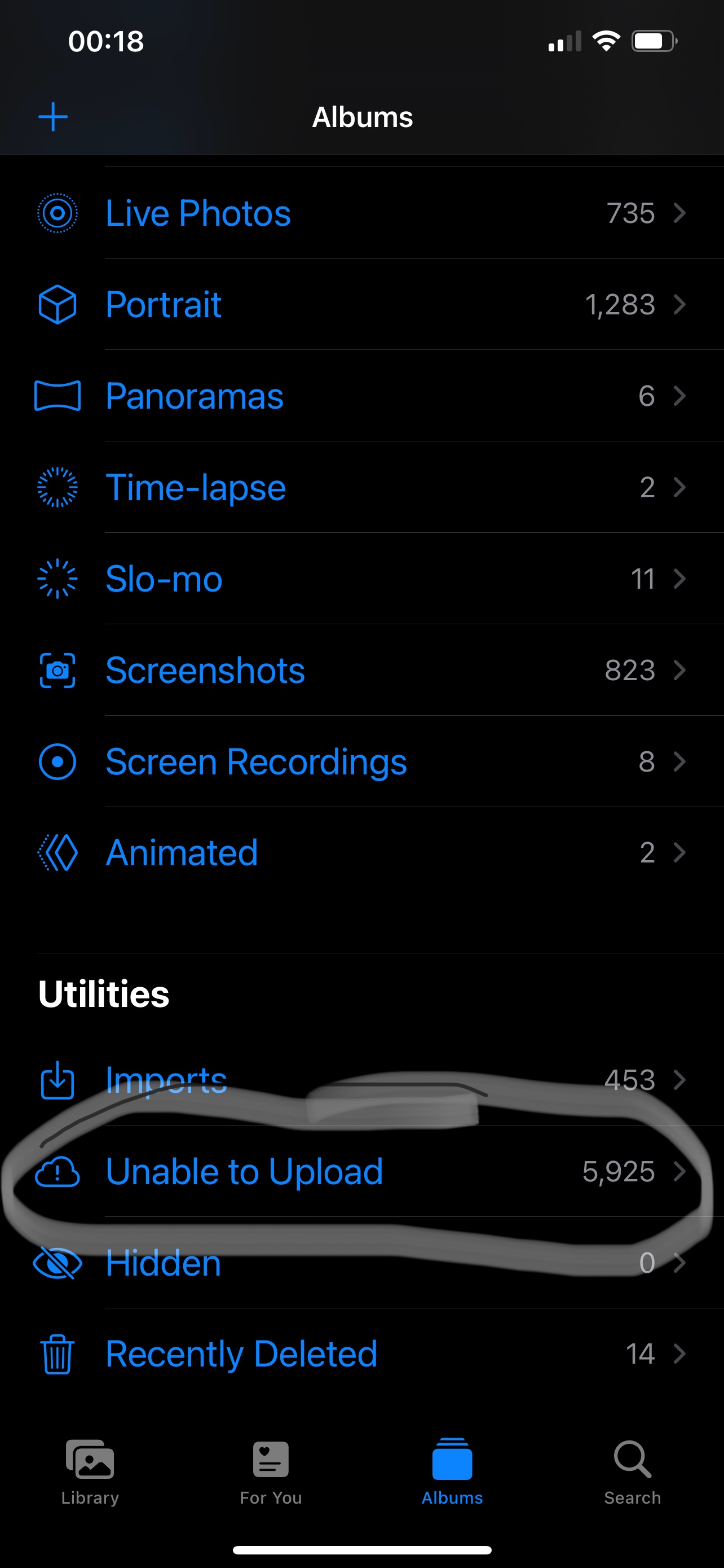 Next, if you tap on the 5,925 photos that are not uploading, do they seem to have anything in common or does it appear to be random?