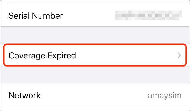 You should find an option between “Serial Number” and “Network” that describes your current warranty status. Tap it to see more information.