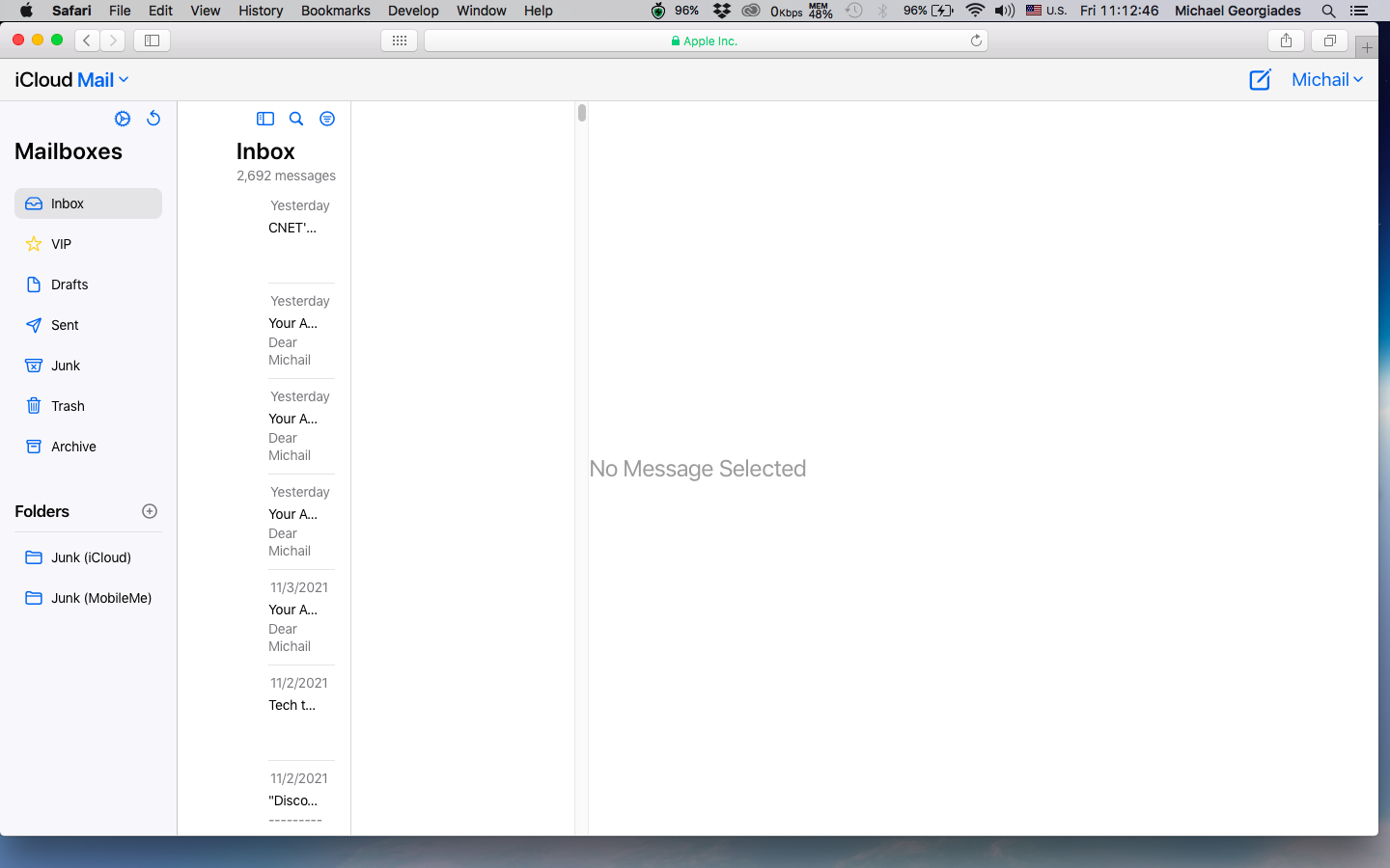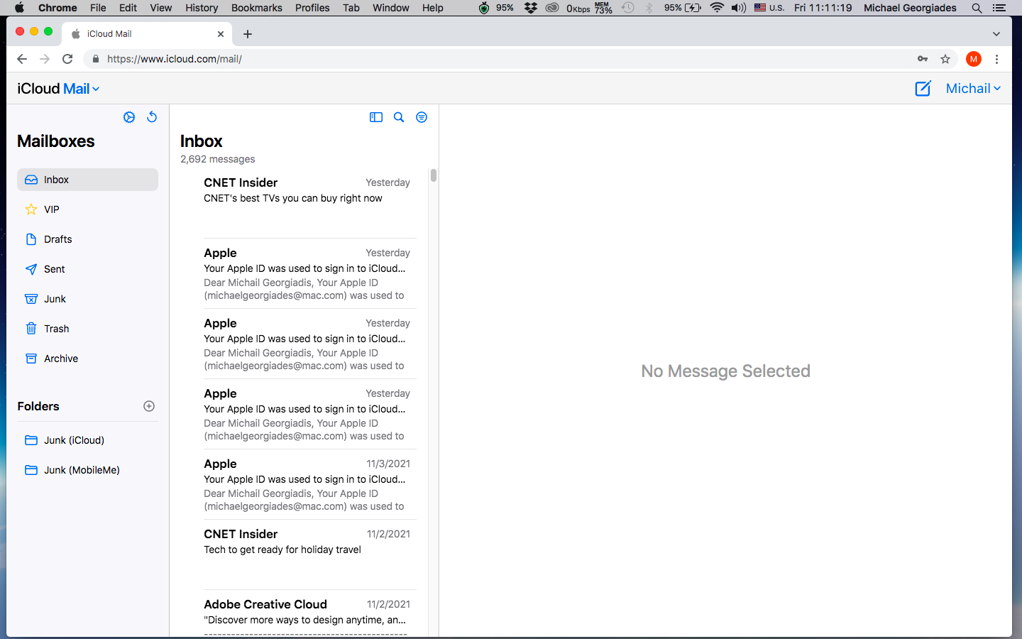 safari 11.1.2 not displaying properly mail in iCloud whilst Chrome 95.0.4638.69