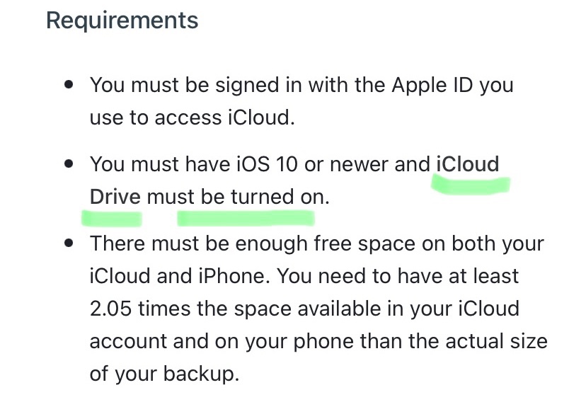 WhatsApp data can be included in an iCloud backup, or synced to iCloud, but not both. This will be different from the backup described in the WhatsApp article. The reason both iPhone iCloud backup and WhatsApp backup exist is an iCloud backup can only be used to restore a complete iPhone to a previous state; you can’t selectively restore just parts of a backup to the phone. But if you use the backup feature within WhatsApp you CAN restore just the WhatsApp chats, without restoring your entire phone.