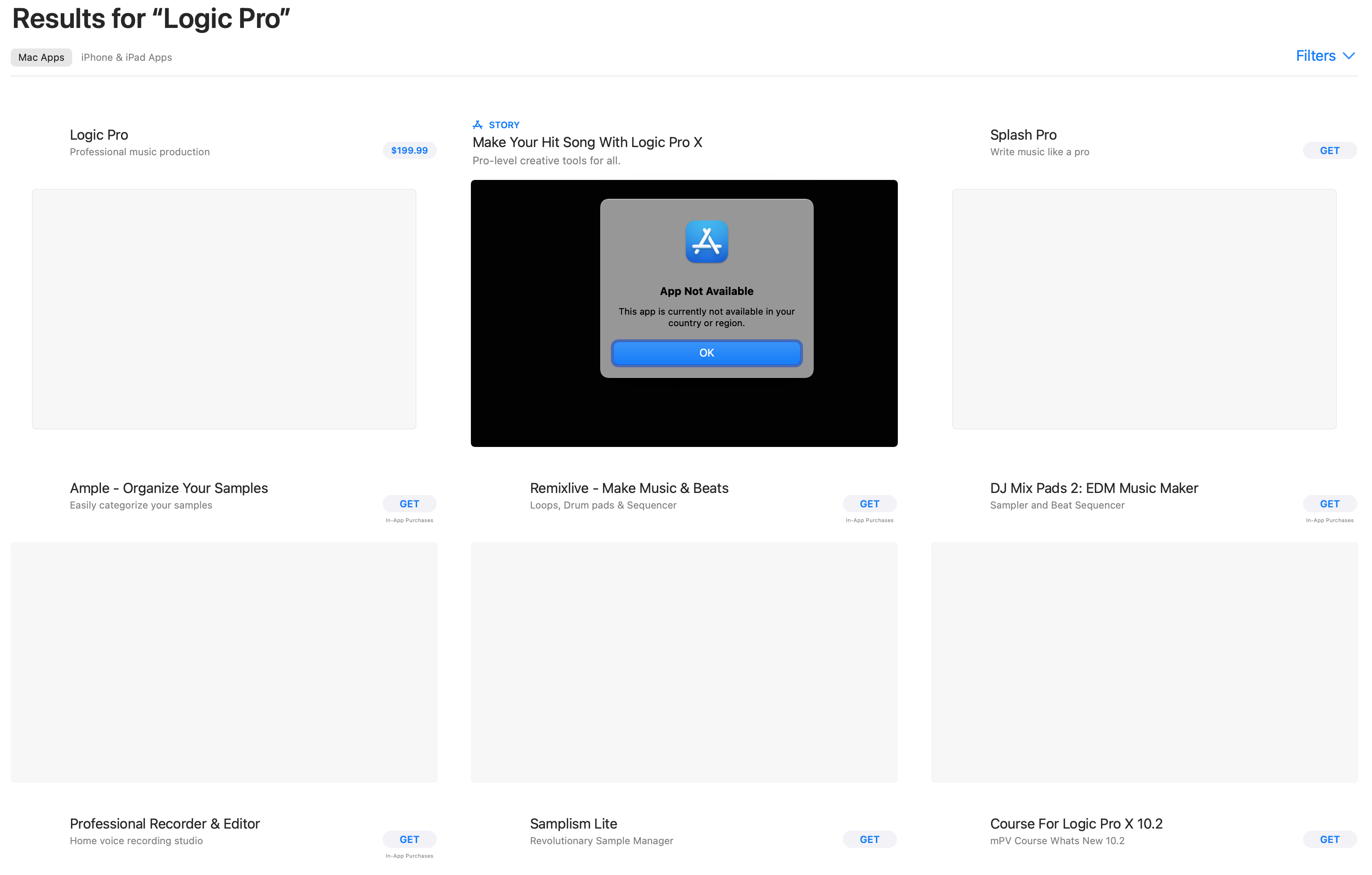 Then, as shown in the screen shot below, I see that Logic Pro is available from the App Store, but it costs $199.99.