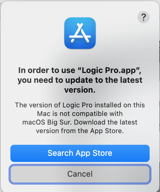 While migrating from my old iMac, I expected some apps to not function crossing from High Sierra to Big Sur, and Logic is one of those that did not. My current version of Logic Pro is 9.1.8. I have been through the product through as many updates as I can remember, since -again I cannot remember, but I think the early 2010s- and have had no issues with climbing version numbers. However: