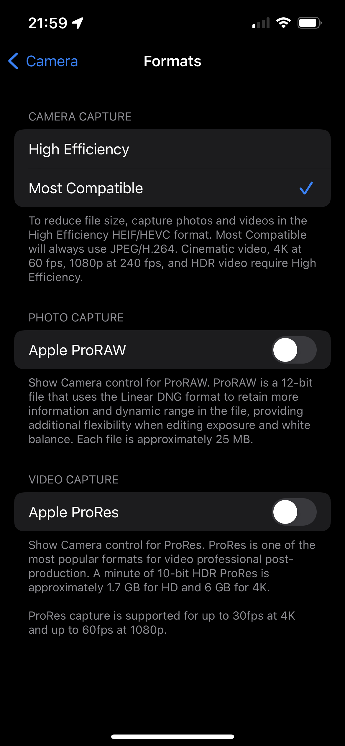 Brand new iPhone 13 Pro Max. Prores does not appear as option in camera settings