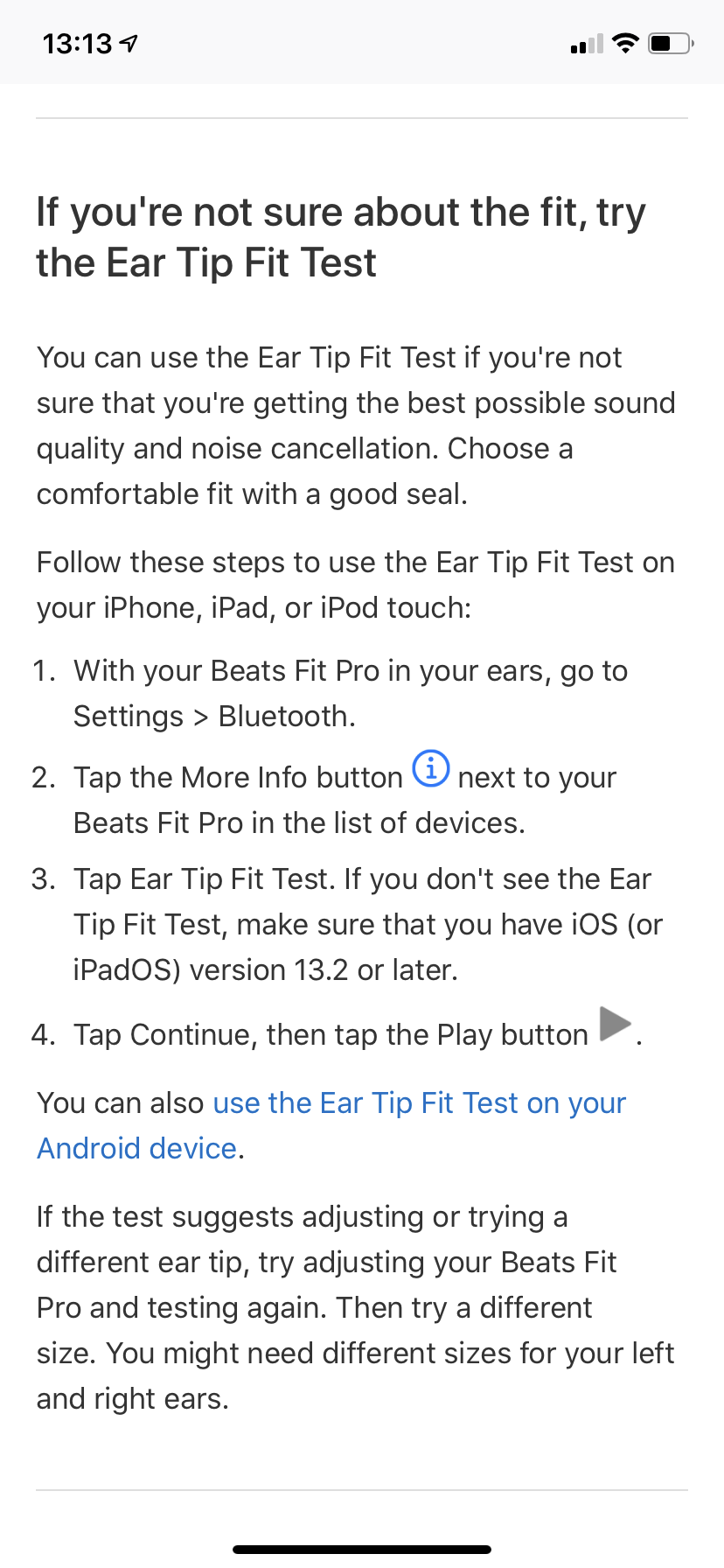 You are reviewing a very helpful article. Since the Ear Tip Fit test isn't appearing, let's reset your Beats. Once you reset, check to see if the issue persists: Reset your Beats Fit Pro