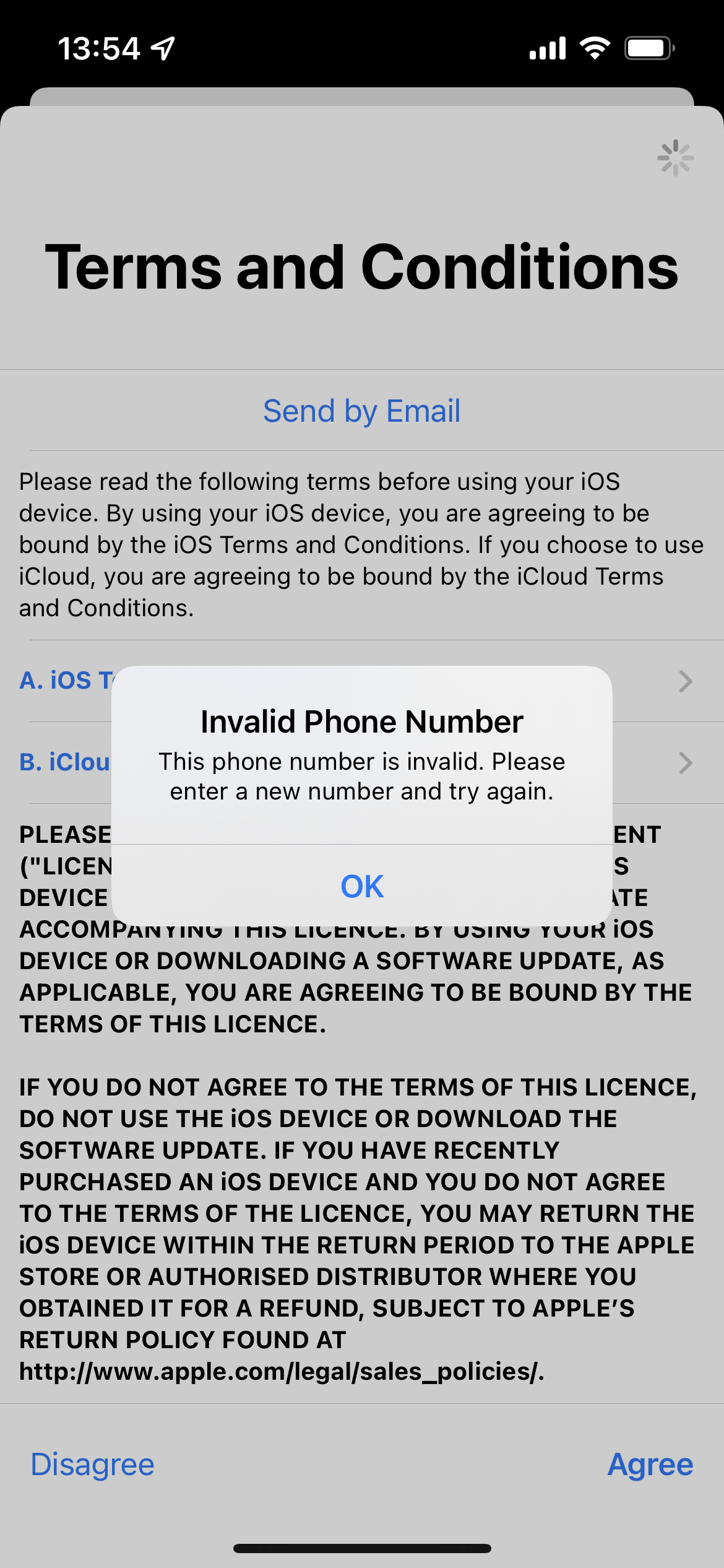 Hi, I'm setting up an iCloud account for my child and have completed all step up until it comes to confirming the mobile phone number to receive notifications to when my child uses iCloud. See the error below, which says my number is invalid - however it's not invalid as I have used it with iCloud myself for a while.