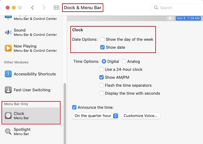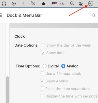 After installing Monterey my clock disappeared from the top right hand of my computer! How do I get it back???