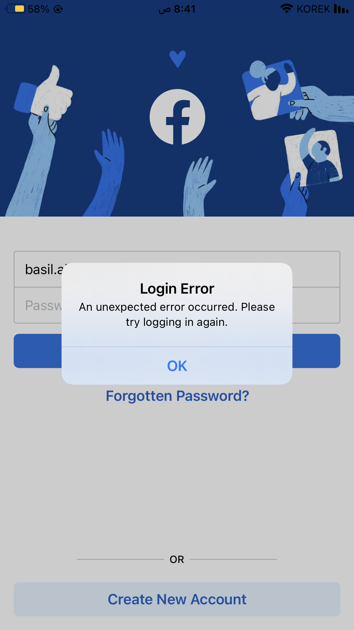 For a period of no less than a year, I encountered a problem logging into my Facebook account through the Facebook application available in the Apple market, and it appears that I have an unexpected error. Any problems logging in, except in the official application available in the Apple Store. Please help and respond as soon as possible. Thank you, Apple.