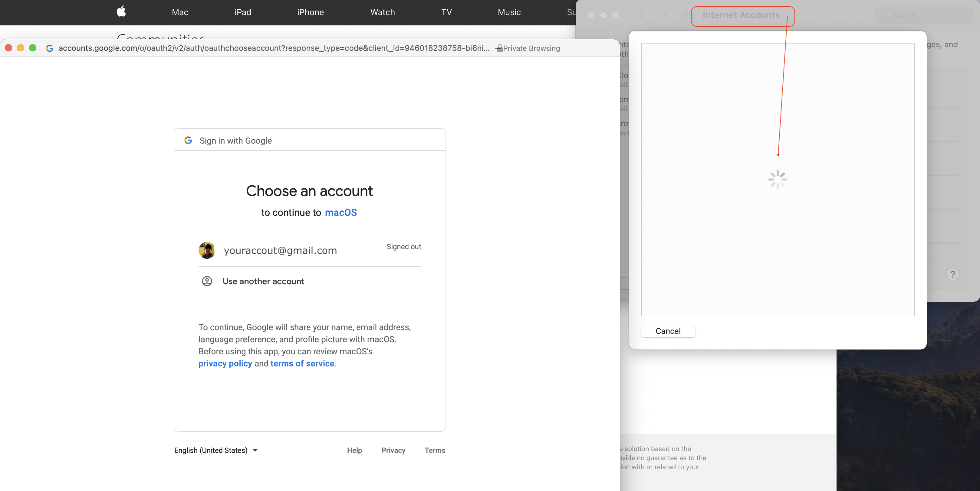 Using the Mail app to add the Google account does not work, it still shows the infinite loop. Please help.