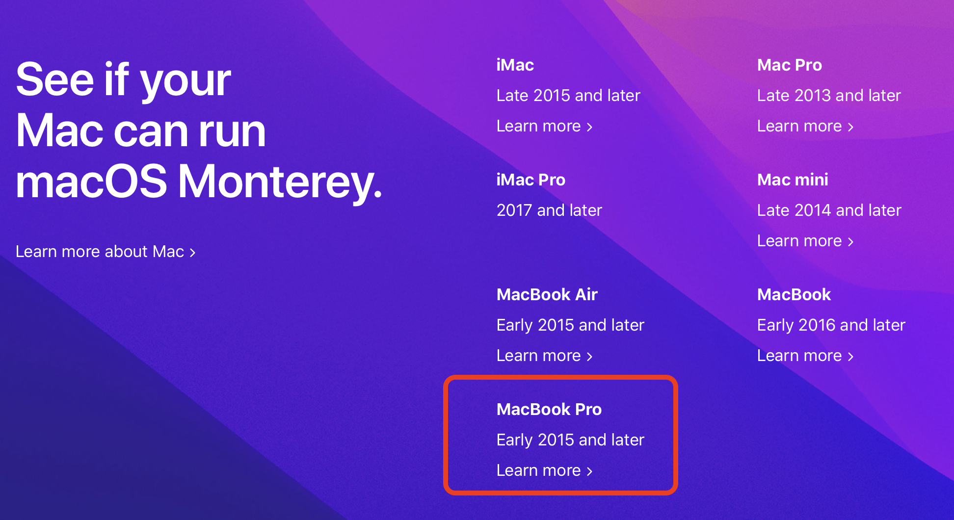 I'm trying to update to Monterey from High Sierra 10.13.6 on my MacBook Pro (Retina, 13-inch, Late 2013) but am getting this notice each time I try. I have 49 GB of storage space, so I'm pretty sure that's not the issue. I've tried accessing Big Sur or Catalina in the App Store, but the page on Safari which I'd hoped would take me to the Big Sur or Catalina installation page in the App Store instead takes me to the App Store homepage. Any idea what might be up? Thanks so much!!