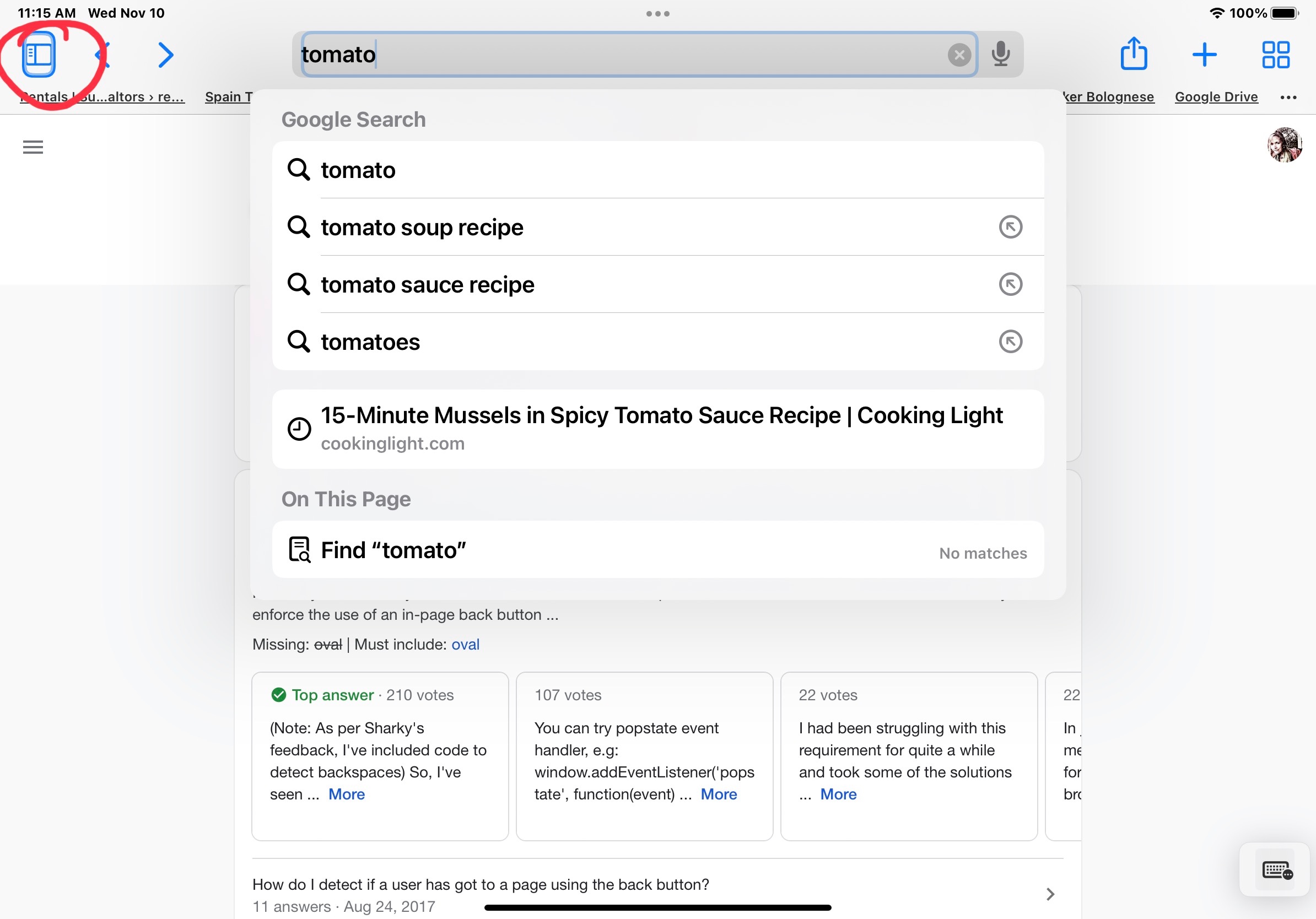Today when I typed something in the search bar, I was suddenly unable to use the space bar. When I pressed space, the safari side screen appeared with an oval around the icon in the corner. If I continued to try and use space, the oval moved to my back browser button. Changing the tab option in settings as per a previous users question didn’t fix the problem.