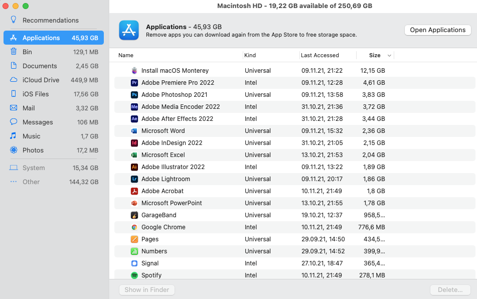 I've got a problem with my storage: I noticed that I don't have much storage left and when I checked what all my stroage is being used for I stumbled upon 144GB worth of "Other" (see screenshot)