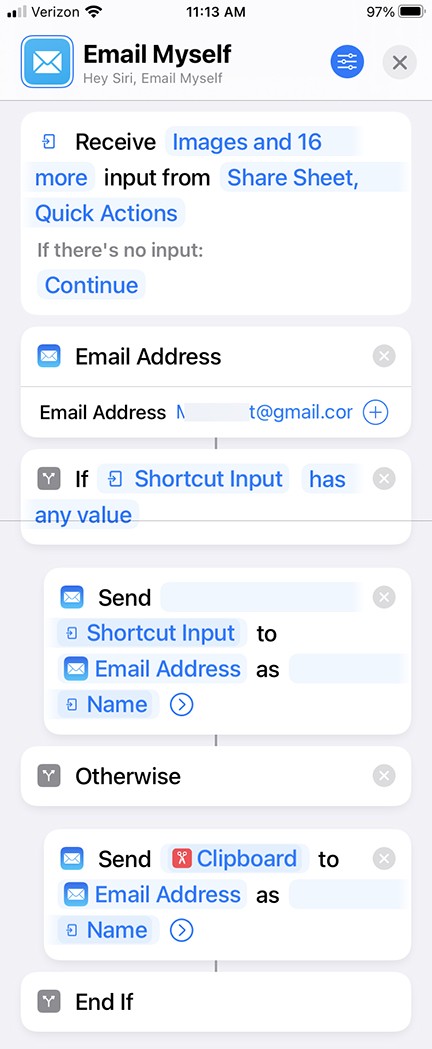 Email Myself Shortcut Help