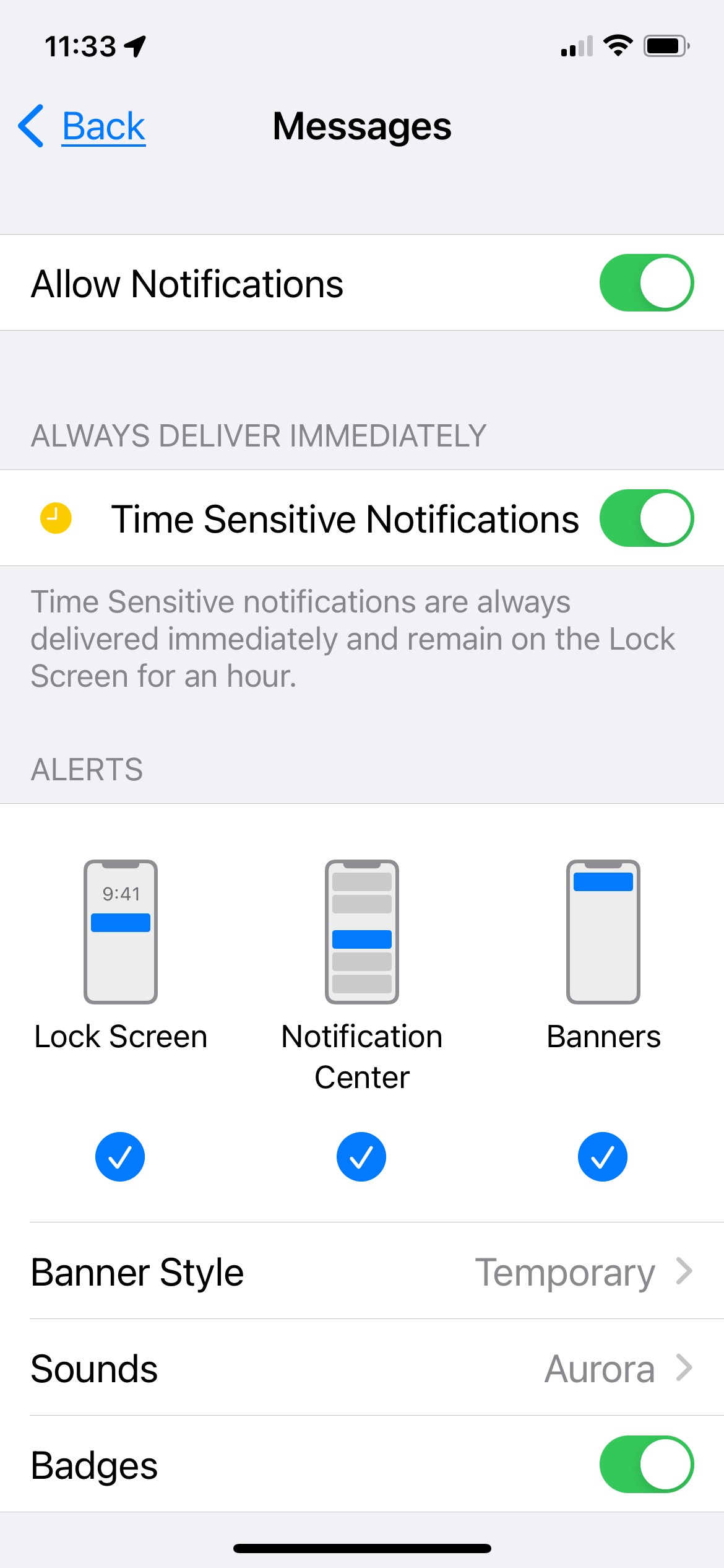 However, for Messages, Badges is working but Banners and Sounds are not.