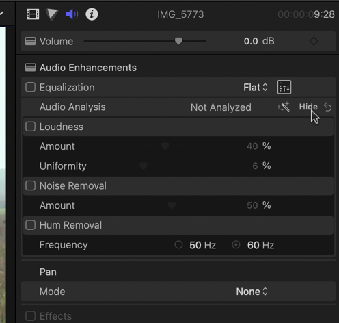 I can see from searching otherwise that there is a hum removal tool available under Audio Enhancements, but for the life of me, I can't get it to appear. Has it been removed from 10.6? If not, can someone kindly walk me through how to get to it? Or should I export and fix the hum in Logic or something else?