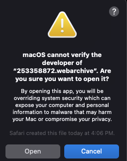 I cannot open webarchive files recently created by Safari