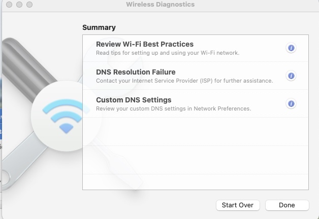 I ran Network Diagnostics and it reported "DNS Resolution Failure" (below).