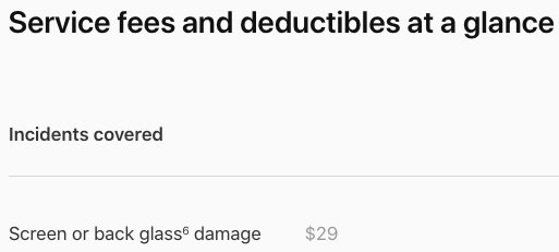 Screen-only or back-glass only* damageAny other damageAppleCare+ service fee$ 29$ 99