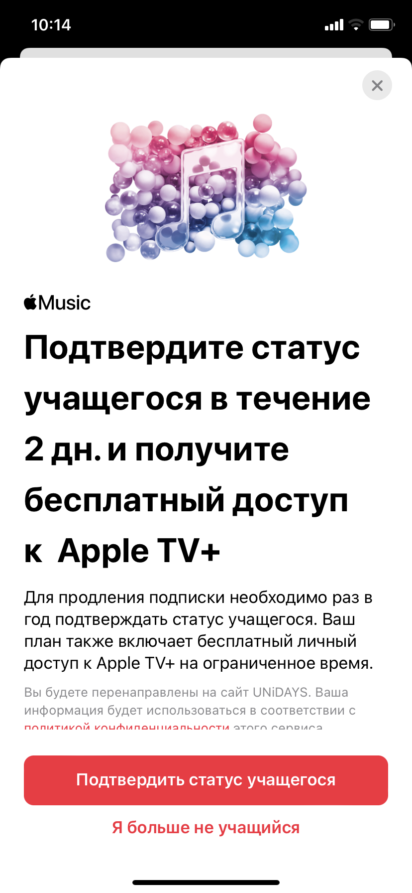 Got a popup which is telling me that i should verify that I am a student, but I already verified this. And if I press verify, im getting a popup that my subscription is prolonged for a year, but the next launch of Apple Music starts this all over again.