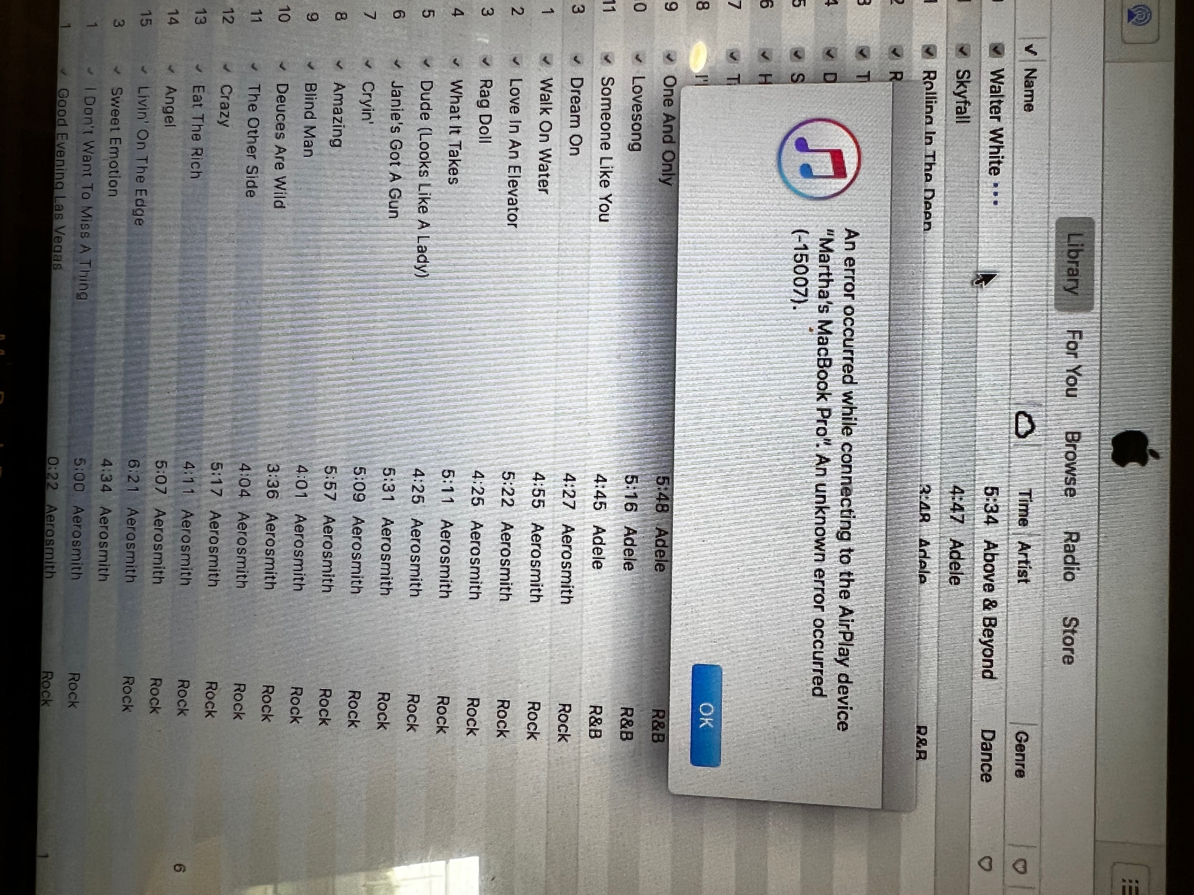 i get error 15007 when trying to connect my airplay from old macbook pro to new one 2021 from itunes